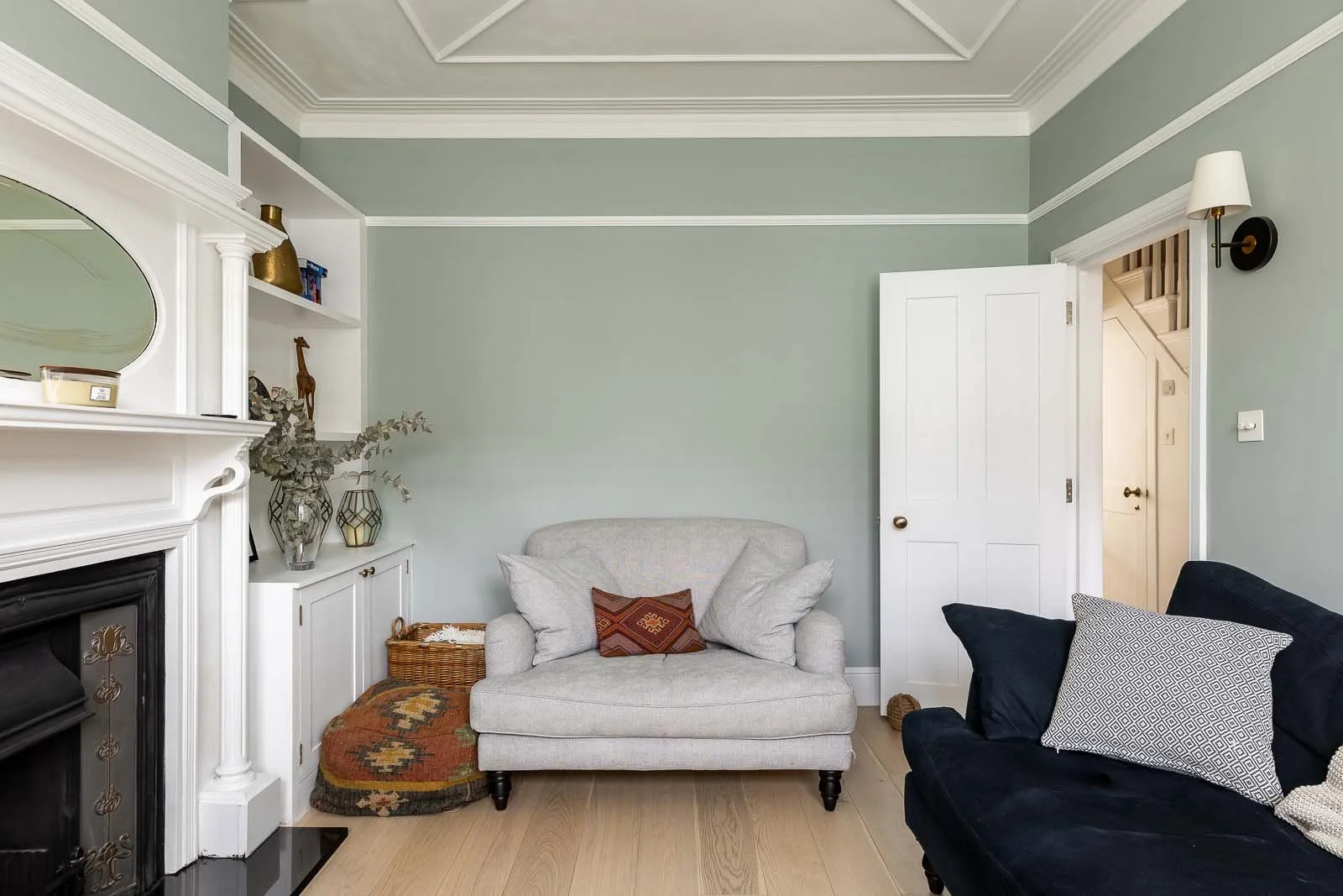 The living room was turned into a cosy retreat, with a beautiful fireplace setting the tone for relaxation. We added three bathrooms: one ensuite, two primary and a convenient WC downstairs, each finished to luxurious standards. Bedrooms were fitted with custom wardrobes, creating a sense of calm and spaciousness.